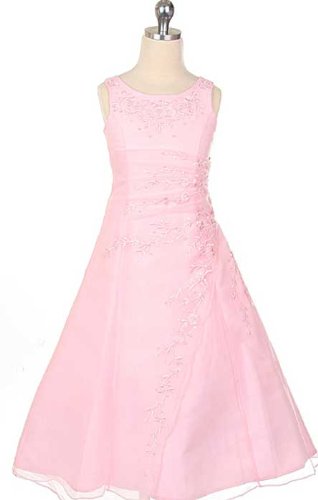 CLEARANCE New Intricate Beaded and Embroidered Organza Dress (Pink, White & Ivory) 4 to 16 Girls ~ Flower Girl