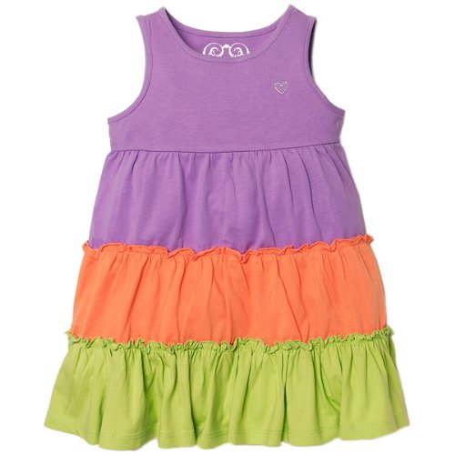 She'll want to wear this dress everyday -- soft, comfy and perfect for any occasion![*-Our pre-washed combed cotton jersey*-Specially washed to give our cotton a luxurious feel*-Rib-knit trim at crewneck and arm openings; slightly gathered at seam along empire waist*-Pullover style for easy dressing *-Three tier dress with lettuce ruffle trim on each seam *-Matching self panty has elasticized edging for all-day comfort *-Dress is designed in an above-the-knee style. Size chart below provides specific length measurements *-Imported]