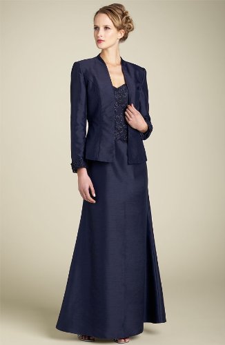Iridescent tafetta evening dress with jacket. Lace top with handbeading. Aline skirt for easy fit.Buy Now
