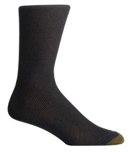 Gold Toe Style 345S. Crew length dress socks. Stretch, ribbed cotton. 9.5  inches (from heel to top). Flat toe seam for comfort. Convenient 3-pack. Fits men's shoe sizes 6-12.