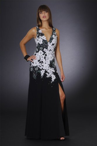 Silk chiffon tank dress with lace and handbeading.  V-neckline. Godet skirt.  Check bust, waist and hip measurement against size chart for perfect fit.