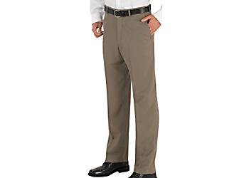 Easy to wear, Easy to care!  Smart Fiber dress pants by Haggar provide quality along with an expandable waistband that gives up to 3" of added comfort, UV protection, a permanent crease & no ironing is necessary.  The softest dress pants by Haggar! 100% Polyester.