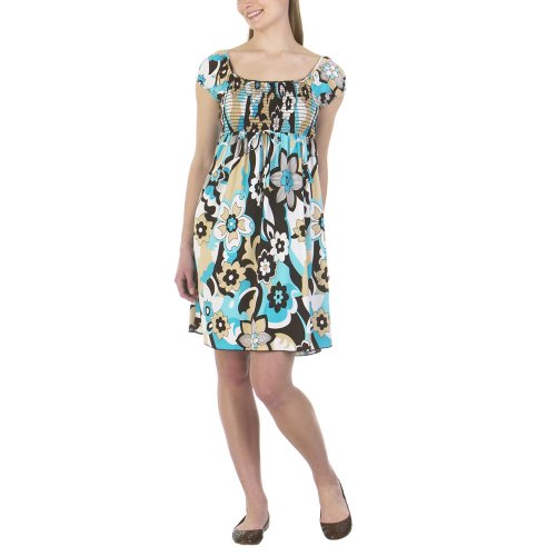 Mossimo® Black: Smocked Top Dress - Brown/ White/ Aqua