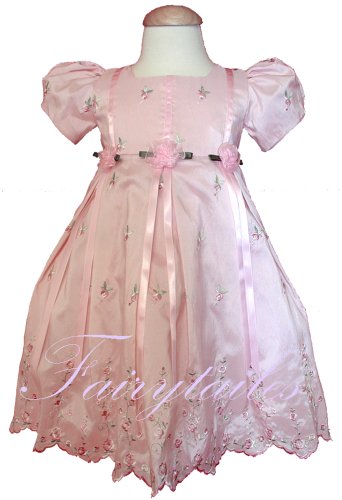 Brand New with Tag Sara Too Dress made of Pink Embroidery Bridal Taffeta , Hand Made Organza Flowers and ribbons on the front waist .