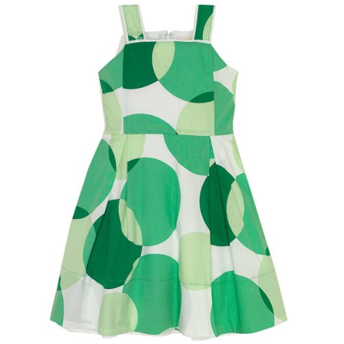 Connect the dots with this fun fashion favorite![*-In circle-styled, crisp 100% cotton poplin*-Pullover style has a hidden zipper closure and self-tying sash in back*-Detailed with grosgrain taping at neckline and straps*-Fashioned with inverted pleats in front and back*-Cotton voile lining is pieced with nylon tulle to create volume; finished with eyelet trim that peeks out at hem*-Imported]