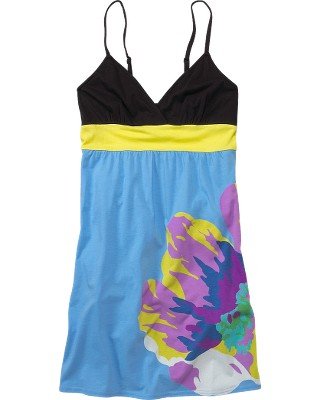 Explode with your love for Roxy. Colorblock dress with large printed flower on side and embroidered logo on back. Adjustable string straps.