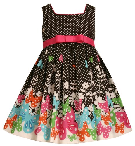 Bonnie Jean Girls 2-6x Butterly Print On Black Ground Woven Dress