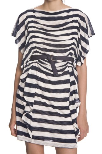 A Jodi Arnold favorite, the Wallace Stripes Cascade Dress is the most stylish and comfortable dress you will own this Spring. Drawing inspiration from Fall's Firebird Shift Dress, this viscose and cotton jersey shift dress is bordered by "fluttered" fabric that runs from the sleeves all the way down to the seams. Elastic panels start at the shoulder on each side of the dress and run down to below the bust, creating unique folds of fabric in the chest and shoulders. A vision of versatility, pair this dress with sandals or wedges, day or night!
