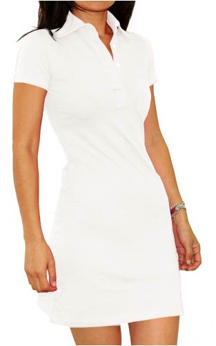 Fine Jersey Leisure Dress - Features: Comfortable and casual, your favorite shirt is now a dress. Hits mid-thigh. 100% Fine Jersey cotton, combed for softness and comfort; Contoured to flatter womenÆs curves; Structured collar holds its shape through re