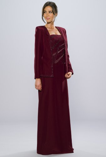 Exquisite! Crepe tank dress and bolero. Tone on tone handbeading.  A seasonless classic.  FIT TIP: This style is form fitted. Use bust, waist and hip measurements to determine fit.