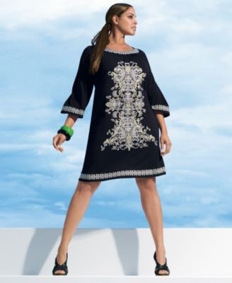 INC International Concepts? Plus Size Embroidered Scoop-Neck Dress with Bell Sleeves