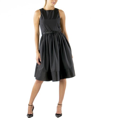 You want just the right dress when you twirl for the crudités being passed on a silver platter. Ah, parties…you can afford to don a different dress for each when you choose from Isaac’s selection. In ebony, this sweet classic takes a festive turn with a slim bodice, slender belt and a softly gathered knee-length skirt. Taffeta fabric is offset by a wide band of satin trapunto trim at the hem: a sure way to stand out from the crowd. Dress is fully lined and has a back zipper with hook-and-eye closure. Now, where are those hors d’oeuvres…? Shell is 64% polyester/31% rayon/3% other; body lining is 65% polyester/35% cotton; sleeve lining is 100% polyester.