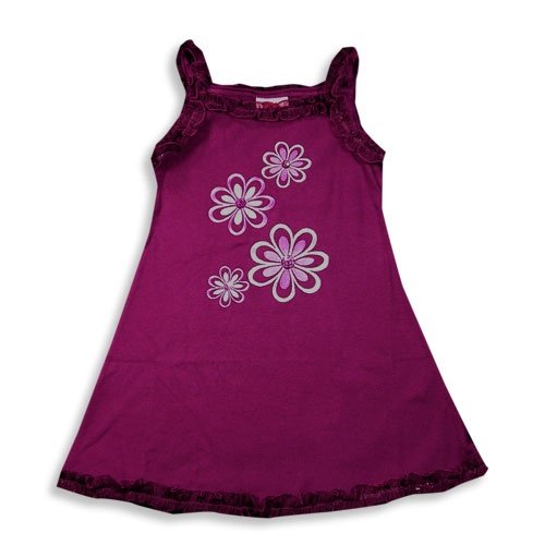 Lipstik Girls - Girls Dress, Purple, Ruffle Mesh Camisole Straps, Embroidered Flowers with Sequins, Ruffle Mesh Around Hemline, 100% Cotton, #10595