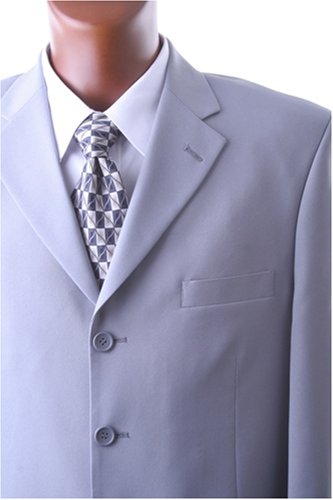 Light, easy, and well-made. This is single breasted four-button men's Dacron Polyester Poplin suit. Notch lapel, flap pockets, no vent. Double pleated trousers with unfinished bottoms for altering ease.
