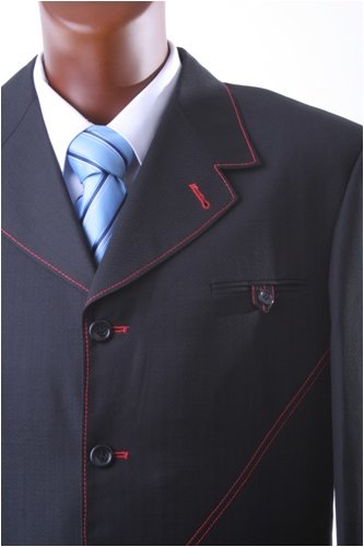 This is men's single breasted four button Superior 150s extra fine dress suit. Jackets are tailored with stretch shoulders. Detailed with dual side vents, superior lining, and fine Italian cotton pocketing.