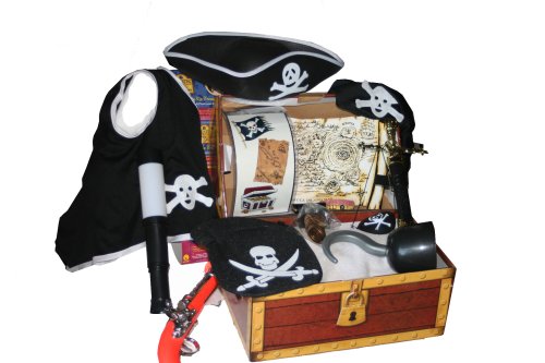 The chest is a cardboard container created to look like a real pirate chest. I decided not to let the kids play with the actual chest because it looks cute on the game shelf. (I don;t think kit would ...