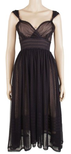 MaxStudio: Be unforgettable in this flirty point d'espirit tulle dress with old world charm. The empire waist, wrapped cap sleeves, soft shirring and ribbon detail create a ladylike look, while fringed edges lend a bit of whimsy. The layers of tulle at the hemline have lots of movement that will make you want to twirl and dance! This dress is fully lined, fits true to size, and falls 26 inches from the natural waist.