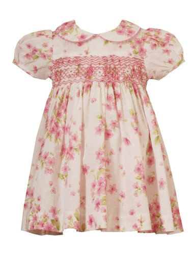 Rare Edition Girls 2-6x Pink Clipdot Floral Smocked Dress