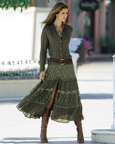 It's hard to buy clothes over the internet, but this dress turned out to be very flattering.  I wear it with brown riding boots and a matching belt.  Very comfortable but looks very pretty.