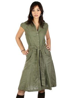 Who doesn't love a dress? Our linen blend shirt-dress has the perfect blend of tailored and feminine styling. Detailed with a button front, spread collar and a full skirt. Large angled pockets, cap sleeves and a wide self belt finish this fresh spring look. Machine wash.   55% linen / 45% viscose.  Please note: Olive is a muted olive drab color.