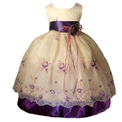 This embroidered organza flower girl dress is designed to make a lasting impression with its bold purple satin trim. Perfect for Easter, the spring or summer, birthday parties, weddings, photos or any special event.