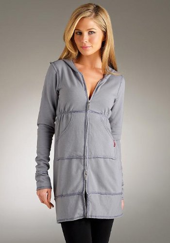 Hard Tail Style FW23. Hooded tunic dress. Soft cotton blend. Zipper with signature logo pull tab. Logo tag detail on front pocket and hood. Raw edge trim creates a chic, tiered look. Convenient front patch pockets. Pair with your favorite jeans or leggings.