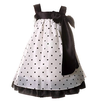 Lovely polkadot dress made of Taffeta and Satin by Kids Dream. This sleeveless dress is accented with a big bow and has a ruffle finish. Perfect for your toddler and little girl for any special occasion.