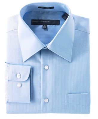 An elegant touch to your better look. Sateen stripe dress shirts with spread collar, chest pocket and clean placket. Round hem.