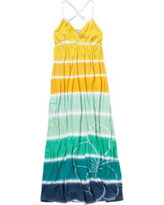 Online exclusive! After the cold winter has passed, you better dress to impress. Rip Curl maxi dress with colorful stripes traveling up front and large flower printed on bottom. Cinched center back area with adjustable criss cross straps and v-neck front.