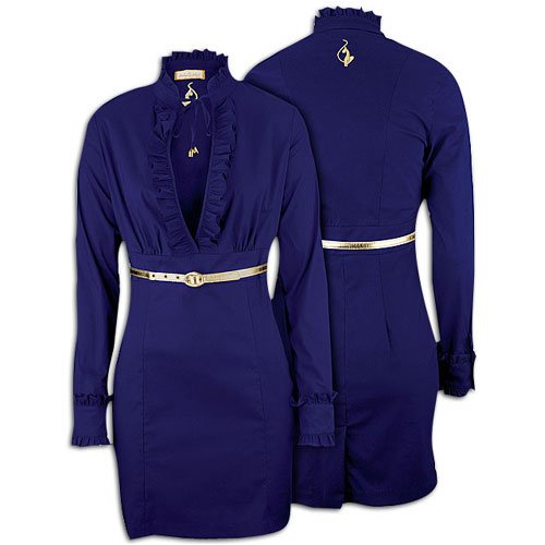 An ultra-chic, flirty dress that will take you from work straight into your evening without a hitch. The Baby Phat Keyhole Ruffle Dress is made of 65% cotton and 35% nylon with embroidery. 34" length. Imported.